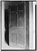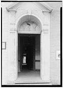 A circular wall, with a six-panel wooden door rounded to mimic the wall's curvature, was located between the building's entrance hall and its stair hall. The stairway's balustrade in the stair hall featured turned baluster shafts and a newel crafted from maple. The stairs themselves featured scrolled step ends. HABS supplementary documentation described "Coffee grinder" style locks and paneled door jambs as features of the building's six-panel wooden doors. Its doorways were reported to have maintained their original decorative molding trim, and the fireplace mantelpieces as being "delicately done."[20]