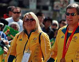 Melbourne homecoming parade for 2008 Olympic Team. Shooters, Stacy Roiall, women's trap, and bronze medalist Warren Potent, 50m Prone Rifle. | |