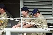 The ADF was not sufficiently prepared for integrating women into all units. Integration was hindered by entrenched discriminatory attitudes, sexual harassment and a perception that less demanding standards were applied to women.[1] This led to a number of scandals, including allegations of sexual harassment on board HMAS Swan, and the RAN's mishandling of these complaints.[7] These scandals did great harm to the ADF's reputation at the time when it most needed servicewomen.[1] The Defence Equality Organisation was established in 1997 in response to these problems, and it developed frameworks to facilitate the acceptance of women throughout the ADF.[8]