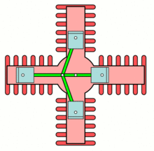 This configuration is extremely uncommon, primarily due its weight and complexity as compared to a radial engine. It was more compact (per number of cylinders) than a V-engine, however. Shorter crankshafts relative to an inline or V design also appealed to early 20th-century engineers like Henry Ford, given the less developed metallurgical technology of the time.[2]