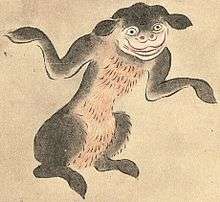 They are sometimes seen to be the same as the yamawaro, spoken of in Western Japan, as well as the yamako in the Wakan Sansai Zue, and as it is thought that tree spirits would cause yamabiko to occur, they are also seen to be the same as the yōkai penghou that lives in trees. In collections of yōkai depictions like the Hyakkai Zukan and the Gazu Hyakki Yagyō, the yamabiko that looks like a dog is thought to be based on the yamako or the penghou.[4]