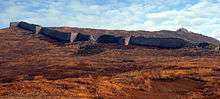 As with other Goguryeo forts, Yanzhou village was built on a hill adjacent to a river, with the river forming a natural barrier. Cliffs form the southern side of the city and a high defensive wall formed an arch around the west, north and east sides. The land slopes such that the eastern side of the city is significantly higher than the west. The site is about 480 metres long and 440 metres wide. The city walls, which are still visible today, cover some 1840 metres in length.[3] The walls were 2 to 3 metres thick and between 5 and 8 metres high with towers at regular intervals along its length, and is comparable to the Great Wall of China in its dimensions. At the top of the ridge are the remains of a square tower with a wall enclosed area to its east. The gate to the city was to the west, near the Taizi River. The construction is of rough-cut stone built dry without mortar.