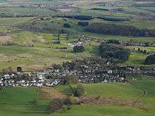 Muckhart (Scottish Gaelic: Muc-Àird) commonly refers to two small villages in Clackmannanshire, Scotland, Pool of Muckhart (Scottish Gaelic: Poll Mhuc-Àird) and Yetts o' Muckhart. Muckhart is one of the Hillfoots Villages, situated on the A91 around 3 miles north-east of Dollar. The Gaelic name, Muc-àird, comes from 'muc' (Pig) + 'àird' (Height), and may derive from the fact that the surrounding fields may once have been used for pig farming.