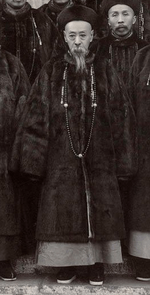 In June 1901, the Zongli Yamen was converted to the Waiwubu (外務部; foreign affairs ministry), with Yikuang still in charge of it. In December, Yikuang's eldest son, Zaizhen, was made a beizi. In discussions over Manchuria, Yikuang "was bolder in resisting the Russians [than Li Hongzhang], though he was in the last resort weak and unable to hold out against pressure. The Japanese regarded him as a 'nonentity' but this judgment may have been influenced by the fact that he did not often accept their advice."[8] He was also appointed to the Grand Council in March 1903.[9] Later that year, he was put in charge of the finance and defence ministries – in addition to his position as head of the foreign affairs ministry. However, he was also relieved of his duties as a yuqian dachen (御前大臣) and replaced by his eldest son, Zaizhen.