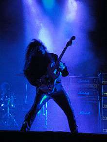 Malmsteen was born Lars Johan Yngve Lannerbäck in Stockholm, Sweden, the third child of a musical family.[1] At the age of ten Malmsteen created his first band, "Track on Earth", consisting of himself and a friend from school playing the drums. At the age of twelve he took his mother's maiden name Malmsten as his surname, then slightly changed it to Malmsteen and altered his third given name Yngve to "Yngwie." As a teenager he was heavily influenced by classical music, particularly 19th century violinist composer Niccolò Paganini,[2] and also discovered his most important guitar influence, Ritchie Blackmore. He also cites Uli Jon Roth and Brian May as significant influences. Malmsteen has stated that Jimi Hendrix had no musical impact on him and did not contribute to his style, but watching the 18 September 1970 TV special, where Hendrix smashed and burned his guitar, made Malmsteen think "this is really cool".[3]