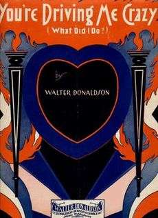 "You’re Driving Me Crazy" is an American popular song composed (music and lyrics) by Walter Donaldson in 1930 and recorded the same year by Lee Morse, Rudy Vallée & His Connecticut Yankees and Guy Lombardo & His Royal Canadians (with vocal by Carmen Lombardo). The song became a hit and was added to the 1930 musical comedy Smiles, starring Marilyn Miller and Fred and Adele Astaire. It was also recorded in 1930 by McKinney's Cotton Pickers and by Nick Lucas & His Crooning Troubadors. Nick Lucas's version, released on Brunswick, was a No. 7 hit: Brunswick 4987 (E-35404). The chords of "You're Driving Me Crazy" form the basis for Bennie Moten's great "Moten Swing."