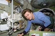 From February 21 to September 2, 1996, Onufriyenko served as Commander of the Mir EO-21 expedition. The Soyuz TM-23 spacecraft carrying Onufriyenko with cosmonaut Yury Usachov lifted off from the Baikonur Cosmodrome on February 21, 1996 at 12:34:05 UTC. After two days of autonomous flight, the Soyuz spacecraft docked with the Mir space station's forward-facing port on February 23 at 14:20 UTC.[2] One month later, he and Yuri Usachov were joined by NASA astronaut Shannon Lucid. During Mir-21 Onufriyenko performed numerous research experiments including Protein crystal growth experiments experiments in materials science using high temperature melting oven "Optizon". The new module Priroda, the seventh and final module of the Mir Space Station arrived on April 26, 1996.[3] Its primary purpose was to conduct Earth resource experiments through remote sensing and to develop and verify remote sensing methods. During Mir EO-21 supplies arrived with the Progress M-31 spacecraft. Onufriyenko and Yuri Usachov were joined by French astronaut Claudie André-Deshays after the departure of Shannon Lucid.