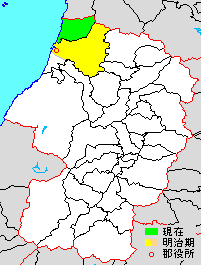 With the establishment of the municipality system on April 1, 1889, two towns (Sakata and Matsumine) and 27 villages were established. Sakata was raised to city status on April 1, 1933, and Yura was raised to town status on April 1, 1941. The town of Yawata was created on December 1, 1954 and Hirata was elevated to town status on August 1, 1964. On November 1, 2005, as part of the Heisei period Municipal mergers and dissolutions in Japan, the city of Sakata and the towns of Hirata, Matsuyama and Yawata merged to form the new city of Sakata.