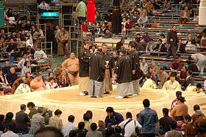- Venue. Any sumo tournament. Compare honbasho.