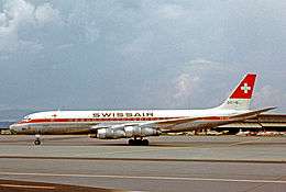 A Swissair Douglas DC-8 at Zürich Airport in 1965